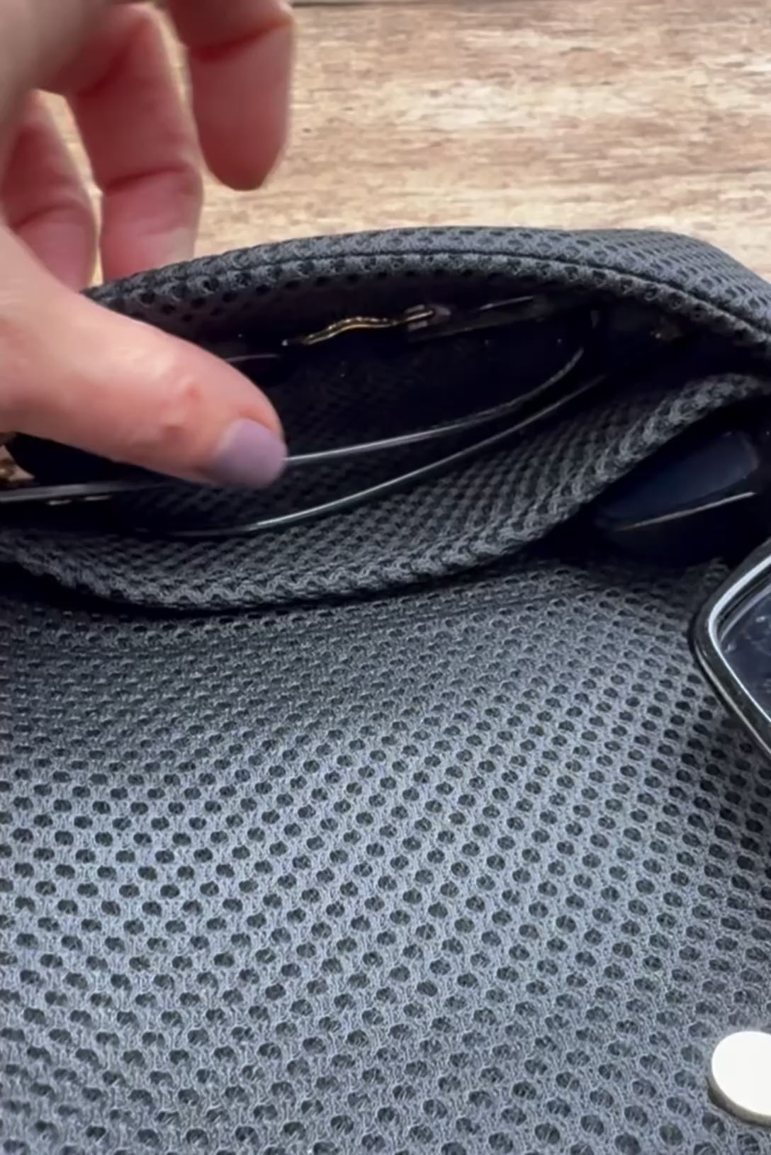 נרתיק המשקפיים הכפול “כריסטינה” מבית עדי בקשי הוא פתרון פרקטי ואלגנטי לנשיאה מסודרת של שני זוגות משקפיים – שמש וראייה – בנרתיק אחד חכם וקליל עשוי רשת שחורה איכותית – קלה, רכה ונושמת, עם תחושה מעט ספוגית להגנה על המשקפיים. הנרתיק כולל חציצה פנימית השומרת על כל זוג בנפרד, ומבנה גמיש שנשאר שטוח ודק כשאין משקפיים בפנים – בלי נפח מיותר בתיק. עיצוב שחור נקי, אורבני ועל-זמני, שמתאים לכל תיק ולכל סגנון – ביום-יום, בעבודה, בנסיעות ובחופשות.