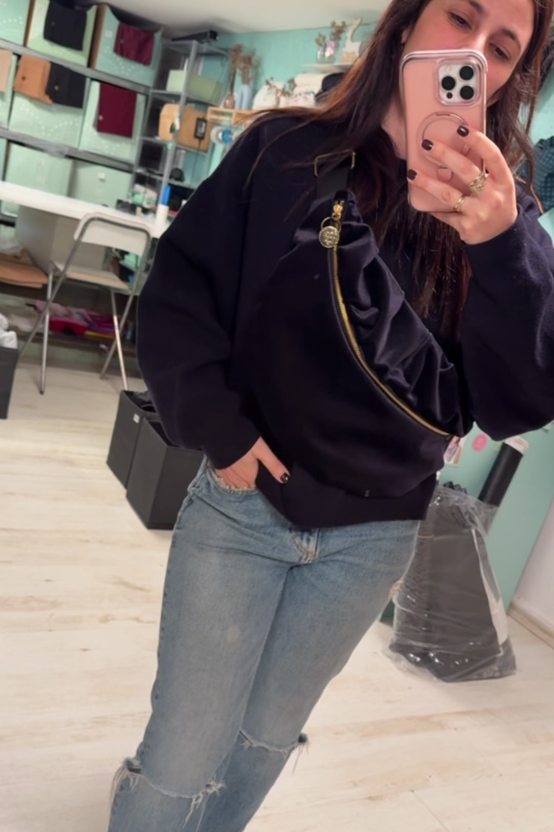 פאוץ' גדול, מרווח וסופר נוח לשימוש יום-יומי, מהבוקר ועד הערב. עשוי בד קטיפה איטלקי איכותי בגוון כחול עמוק ועשיר, בשילוב רוכסן זהב שיקי וכפתור נצנצים ייחודי מקולקציית כפתורי הקוטור. הפאוץ' עוצב עבור מי שמחפשת פיס מיוחד עם אמירה גדולה שמרים כל לוק. כולל תא מרכזי מרווח ותא פנימי קטן לאחסון חכם.