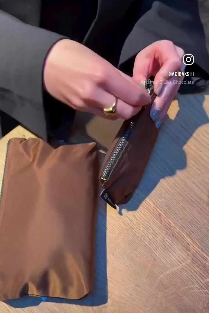החלק החיצוני עשוי בד איטלקי מובחר בגוון חום עמוק ומדויק, שמעניק לארנק מראה ייחודי וחמים. בפנים – רשת שחורה איכותית ומעט ספוגית, השומרת על הפריטים שלך ומוסיפה טאץ’ אלגנטי.